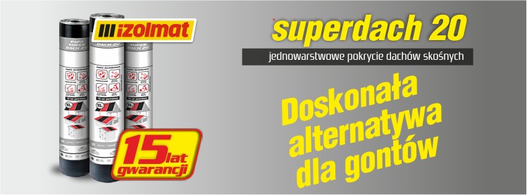 IZOLMAT Superdach 20 doskonale sprawdzi się również przy renowacji pokryć z pap tradycyjnych. Stosowana w remoncie dachu nie tylko poprawi estetykę połaci, ale także zagwarantuje wieloletnią bezawaryjność. IZOLMAT Superdach 20 stanowi doskonałą alternatywę dla dachówki, blachy oraz gontów. Jest to rozwiązanie tańsze i łatwiejsze w montażu, a także lżejsza, przez co nie obciąża tak więźby dachowej.