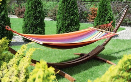 Jeżeli dysponujemy dużym ogrodem, mamy spory, możliwy do zaaranżowania teren, to bez dwóch zdań zdecydujmy się na tradycyjny duży hamak pozwalający na przyjęcie wygodnej, relaksującej pozycji leżącej. Jeśli nasz ogród jest zadrzewiony, nie będziemy mieć problemu z rozwieszeniem takiego modelu, natomiast gdy nie mamy drzew, ale np. duże płaszczyzny trawnika, wybierzmy hamak z gotowym stelażem. Hamaki pełnowymiarowe znajdziemy w różnych wersjach i w zależności od naszych preferencji bez trudu dobierzemy model praktyczny oraz funkcjonalny, a przy tym dekoracyjny. Tradycyjne hamaki ażurowe z plecionego bawełniano- poliestrowego sznurka, przypominające rybacką sieć są lekkie i wygodne w montażu. Szybko schną w razie deszczu oraz nie brudzą się tak jak pełne, kiedy zostawimy je na noc na zewnątrz (drobne gałązki, igły i listki przelatują przez siatkę). Niestety dłuższe leżenie na nich, szczególnie bez „wyściółki” powoduje, że sznurek może nam dokuczać, nieprzyjemnie wbijając się w skórę. Ponadto wszelkie drobiazgi, jakie zabierzemy ze sobą na hamak, np. telefon, mogą nam wyślizgnąć się na ziemię. Wygodniejszy zatem będzie wariant pełny, wykonany zwykle z impregnowanego materiału łączącego w sobie bawełnę i poliester. Warto jednak zastosować przy takim modelu „szybki montaż” (np. w wersji karabińczyków), który pozwoli na łatwe zdejmowania hamaka, gdy zbiera się na wiatr i deszcz. Wśród hamaków pełnych znajdziemy duży asortyment wzorów oraz kolorów, zarówno tych nadających się do romantycznych letnich scenerii typu boho (wykończone np. koronkowymi frędzlami i koronkami), jak i modeli sportowo-survivalowych doskonale kamuflujących się pośród drzew.
